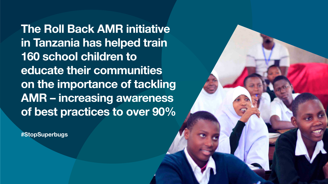 The initiative aims to educate school children about the impact of antimicrobial resistance and offers training focused on raising agents of change in schools across Tanzania – as they are future parents and policymakers, thus able to affect change across their communities.