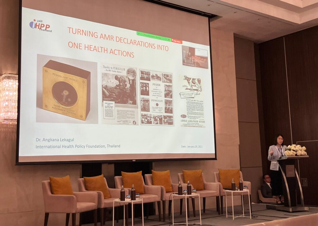 The first session was centred around translating political commitments into effective, actionable interventions to address AMR. Dr. Angkana Lekagul, a researcher at the IHPP, set the stage with her keynote, “Turning AMR Declarations into One Health Actions.” She made prominent how countries in the Asia-Pacific region can transition from policy declarations to practical strategies by strengthening capacities and ensuring sustainable financing, framing AMR as a shared challenge that requires coordinated action across the human, animal, and environmental sectors.