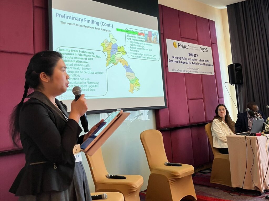Building on the theme of capacity-building, Dr. Phoutsathaphone Sibounheuang, Deputy Head of the Clinical Pharmacy Department in Lao PDR, highlighted the role of Good Pharmacy Practice (GPP) in AMR management. She presented preliminary results from an ICARS-supported project in Lao PDR, which focuses on improving antimicrobial stewardship and ensuring the appropriate dispensing of antimicrobials in private pharmacies through the utilisation of GPP. This initiative reflected the broader need for practical, locally driven solutions that target the effective use of antibiotics at the community level, reinforcing the importance of local health systems in addressing AMR.