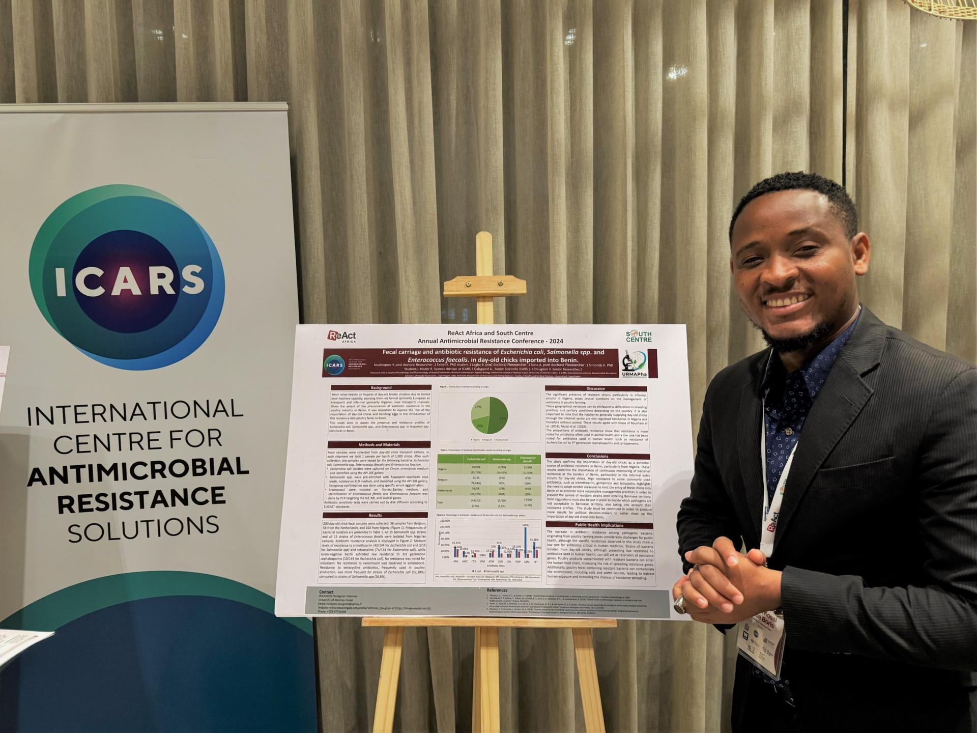 ICARS funded a co-development study in July 2022 in Benin which revealed the presence of multidrug-resistant bacteria (E. coli, Salmonella spp., Enterobacter cloacae, Bacillus cereus, Pseudomonas spp. and K. pneumoniae) with a predominance in the informally imported day-old chicks compared to the formally imported ones. For example, 80% and 93 % of E. coli strains isolated from illegally imported day-old chicks were resistant to ciprofloxacin and gentamicin, respectively.